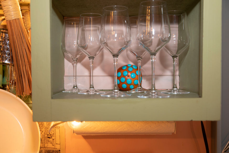 Little Animals invites us into a world where the comfort of the everyday is subverted by an alien presence. This series of photographic images constructed through staged photography of ephemeral sculptures transports us to a bizarre reality that borders between the ordinary and the surreal. Recognizable pieces of food, diminutive anthropomorphic objects, and bacteria-like faceless creatures transform commonplace surroundings into humorous yet unsettling reimaginings. These images evoke a sensorial tension between the uncomfortable and the familiar, disrupting the harmony within our sense of home.